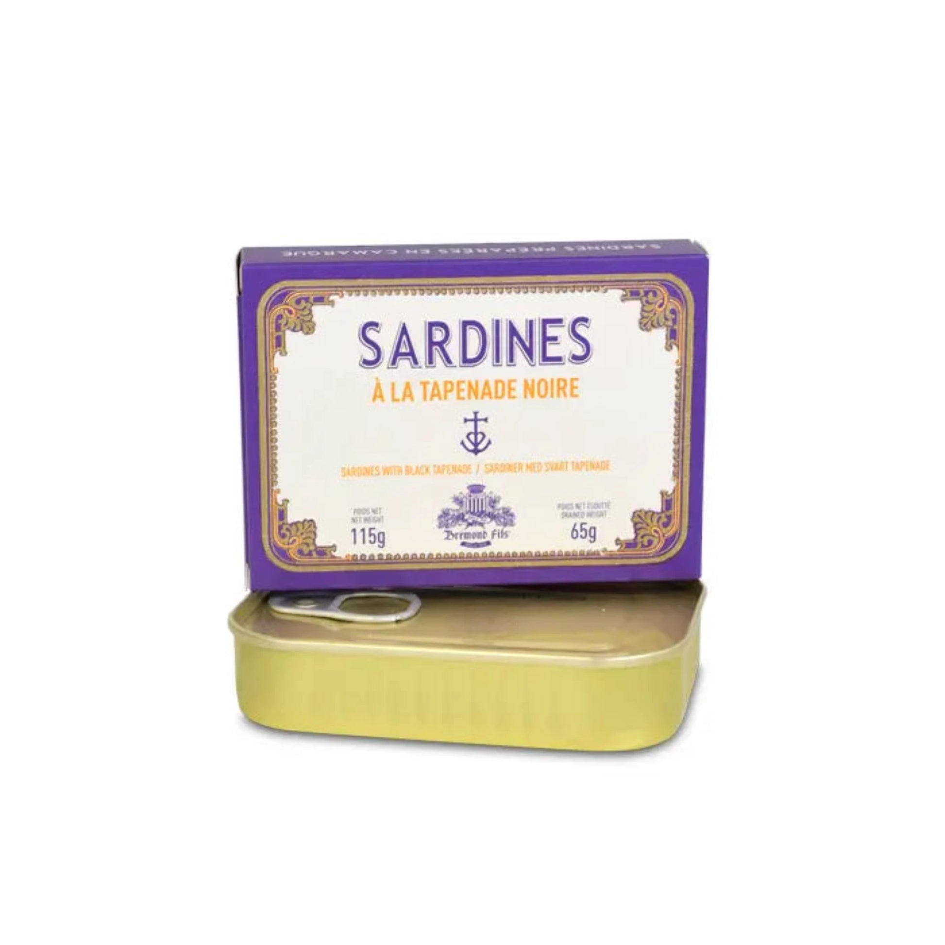 Entdecke die einzigartige Kombination aus Sardinen und schwarzer Tapenade, traditionell verarbeitet und in hochwertigem Olivenöl eingelegt.